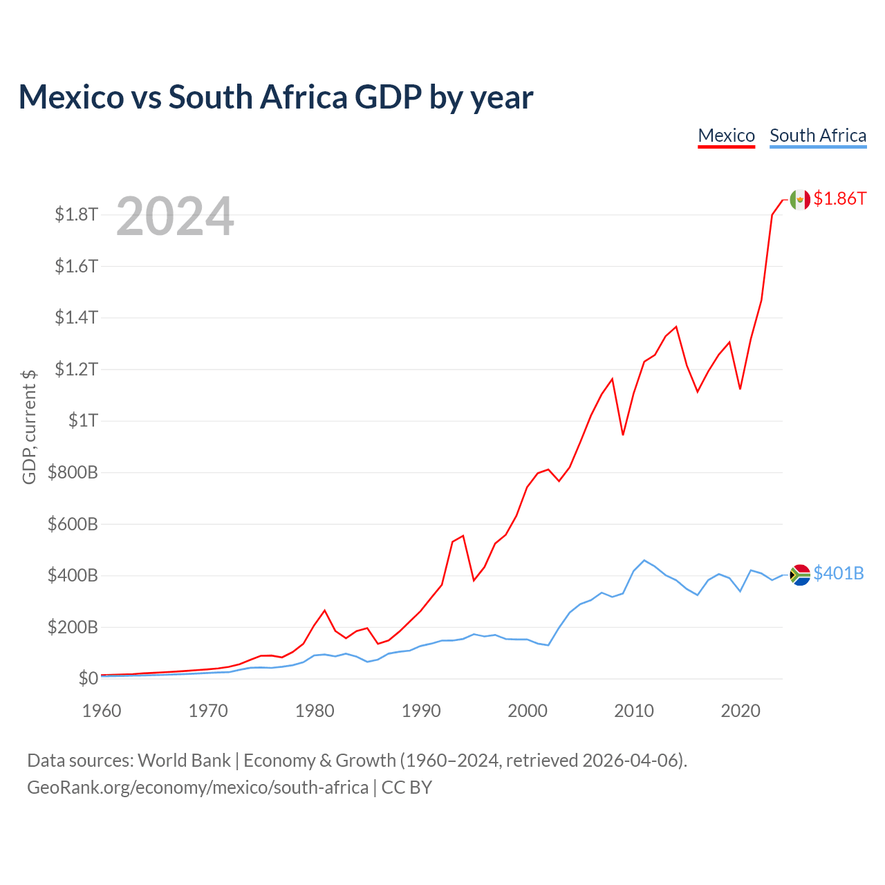 Mexico vs South Africa GDP by year