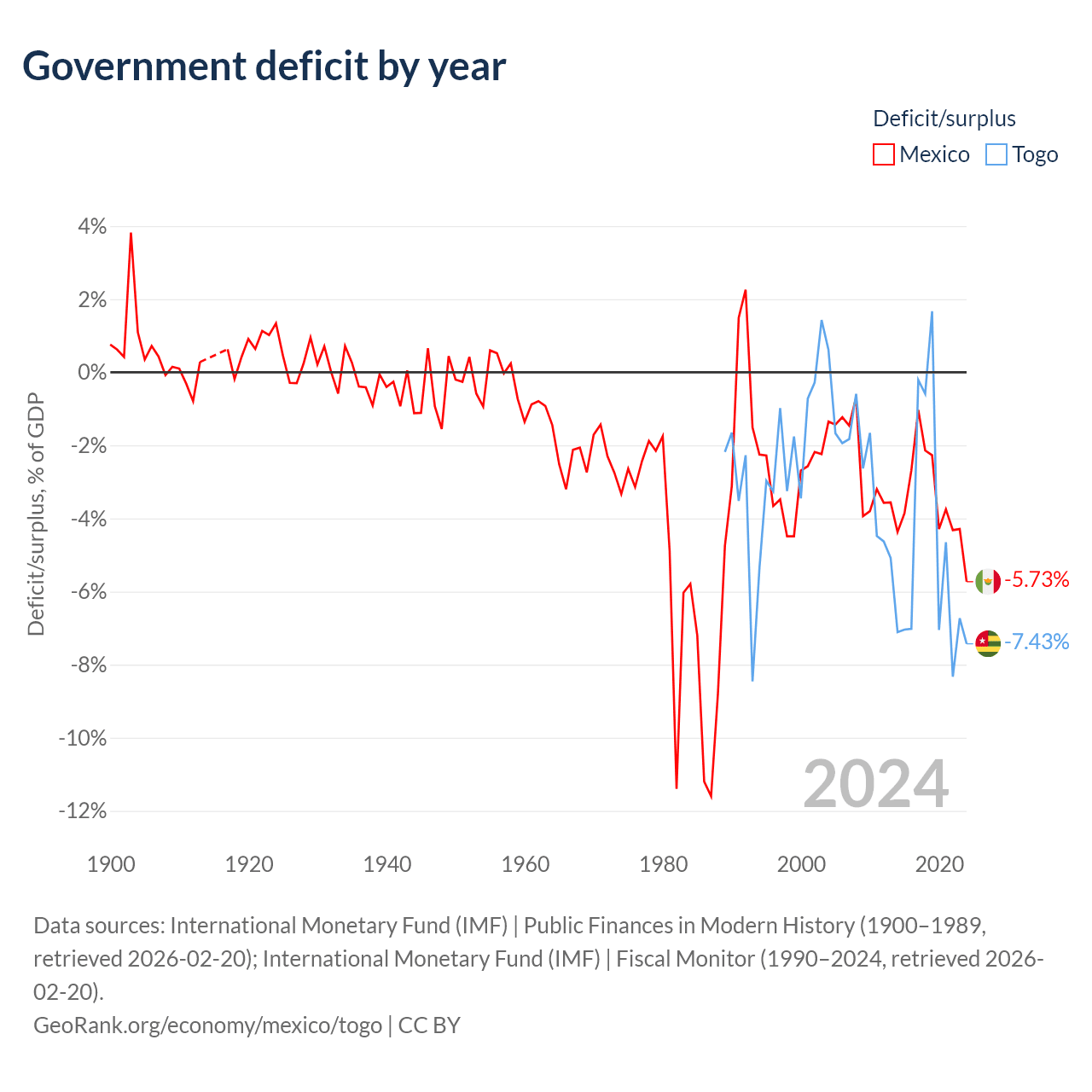 - International Monetary Fund (IMF) | Public Finances in Modern History (1900–2004, retrieved 2026-02-20)