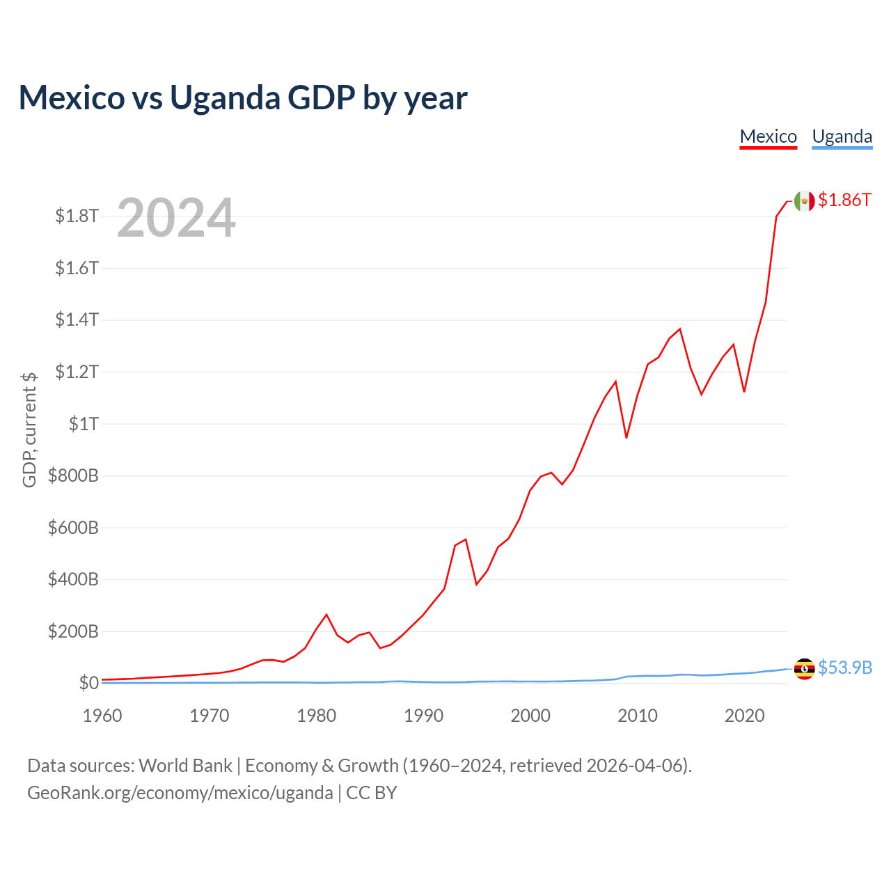 Mexico vs Uganda GDP by year