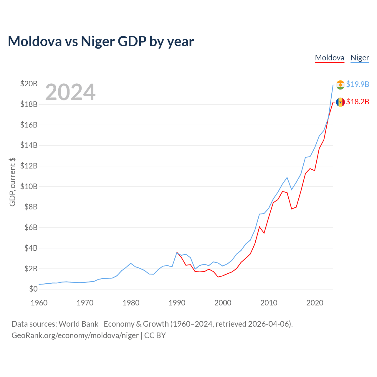 Moldova vs Niger GDP by year