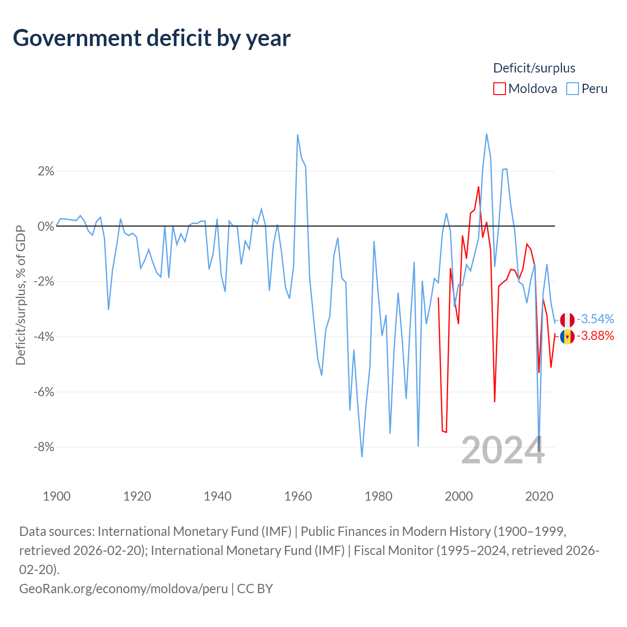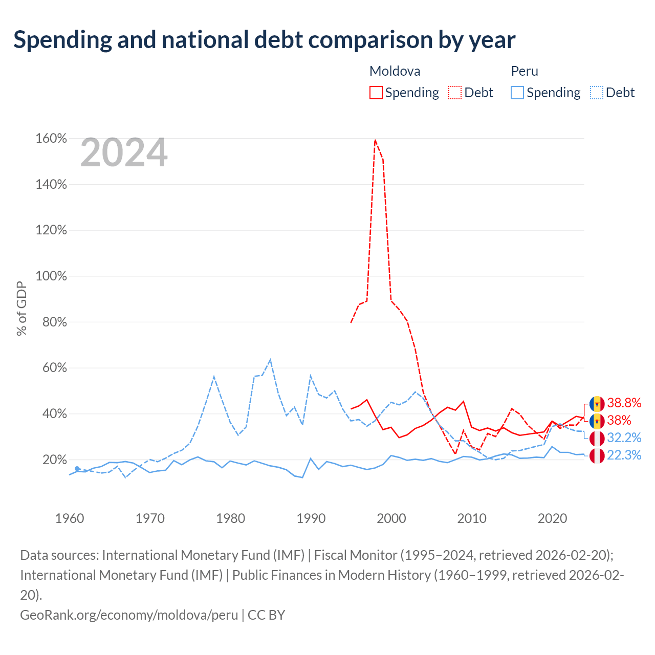 Moldova has $7.06B in government debt (38.8% of GDP), compared to $93B (32.2% of GDP) in Peru.