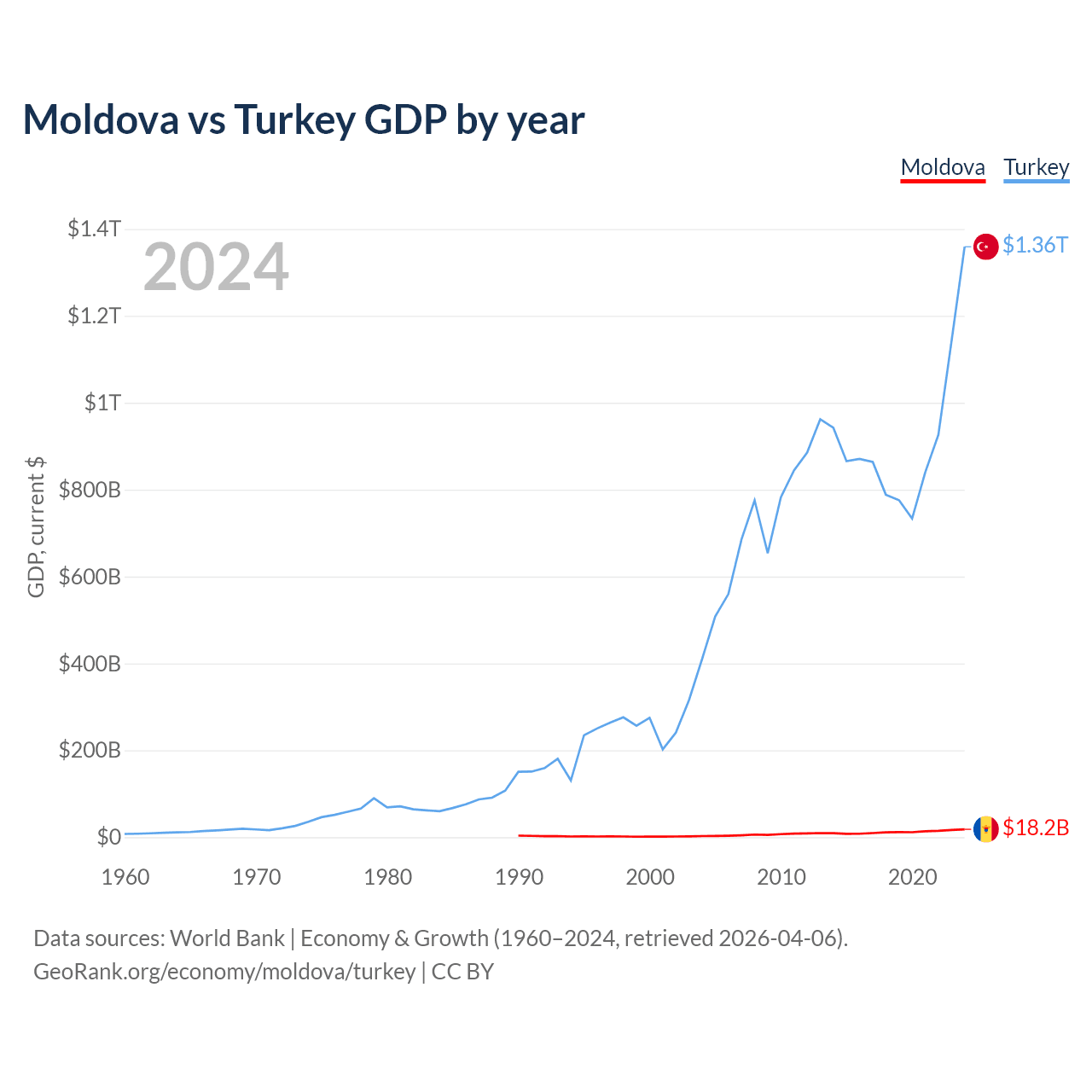 Moldova vs Turkey GDP by year