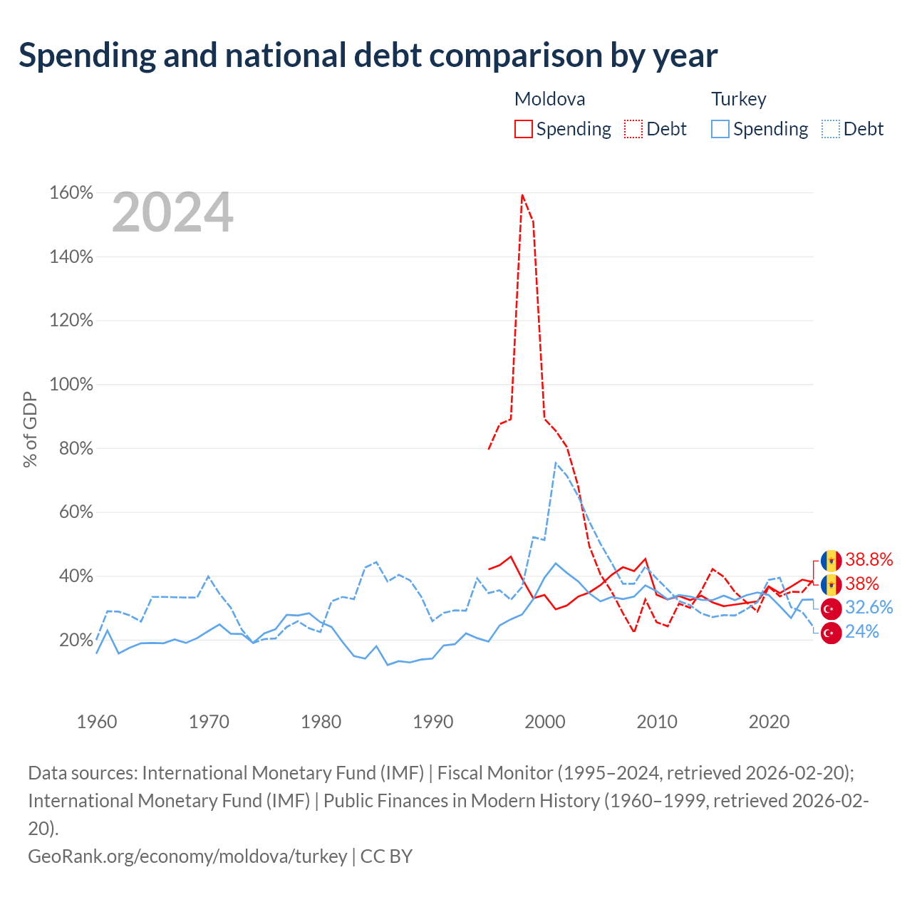 Moldova has $7.06B in government debt (38.8% of GDP), compared to $327B (24% of GDP) in Turkey.