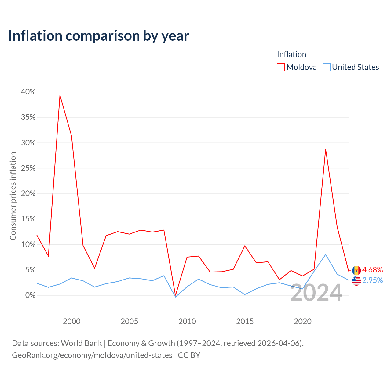 Data sources: World Bank | Economy & Growth (1960–2024, retrieved 2026-04-06).
