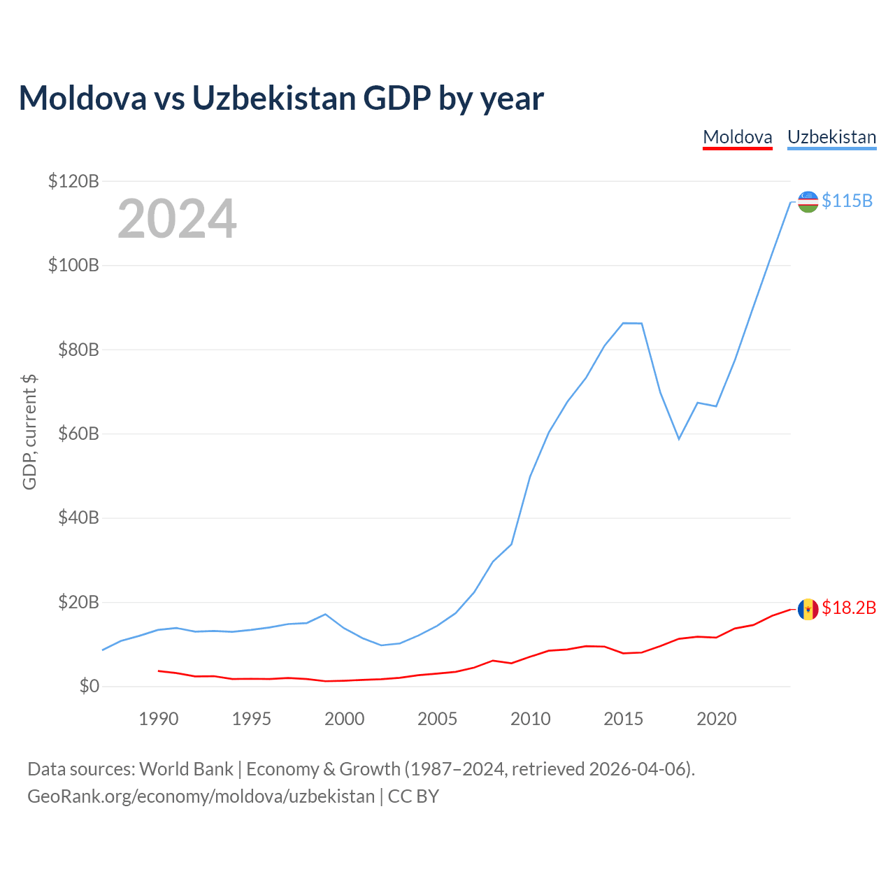 Moldova vs Uzbekistan GDP by year