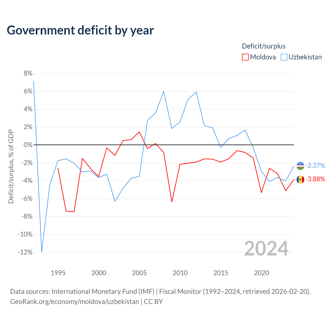 - International Monetary Fund (IMF) | Fiscal Monitor (1992–2024, retrieved 2026-02-20)
