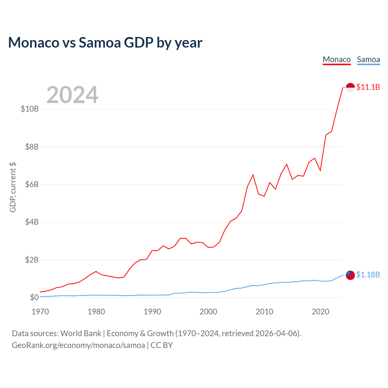 Monaco vs Samoa GDP by year