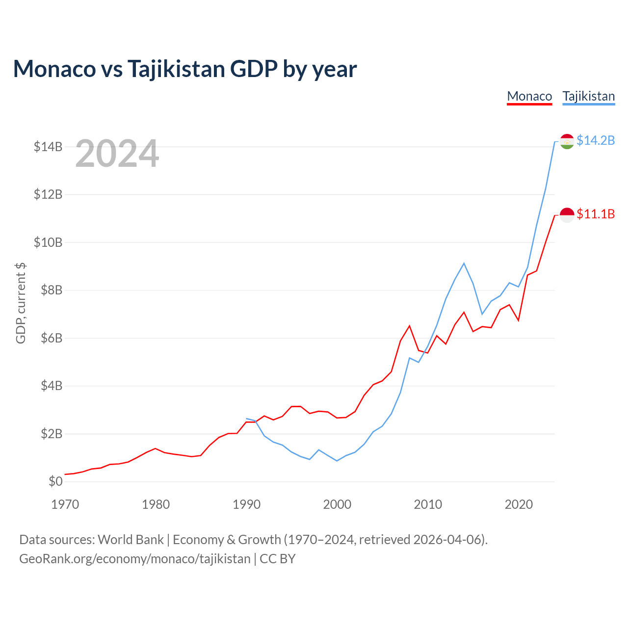 Monaco vs Tajikistan GDP by year