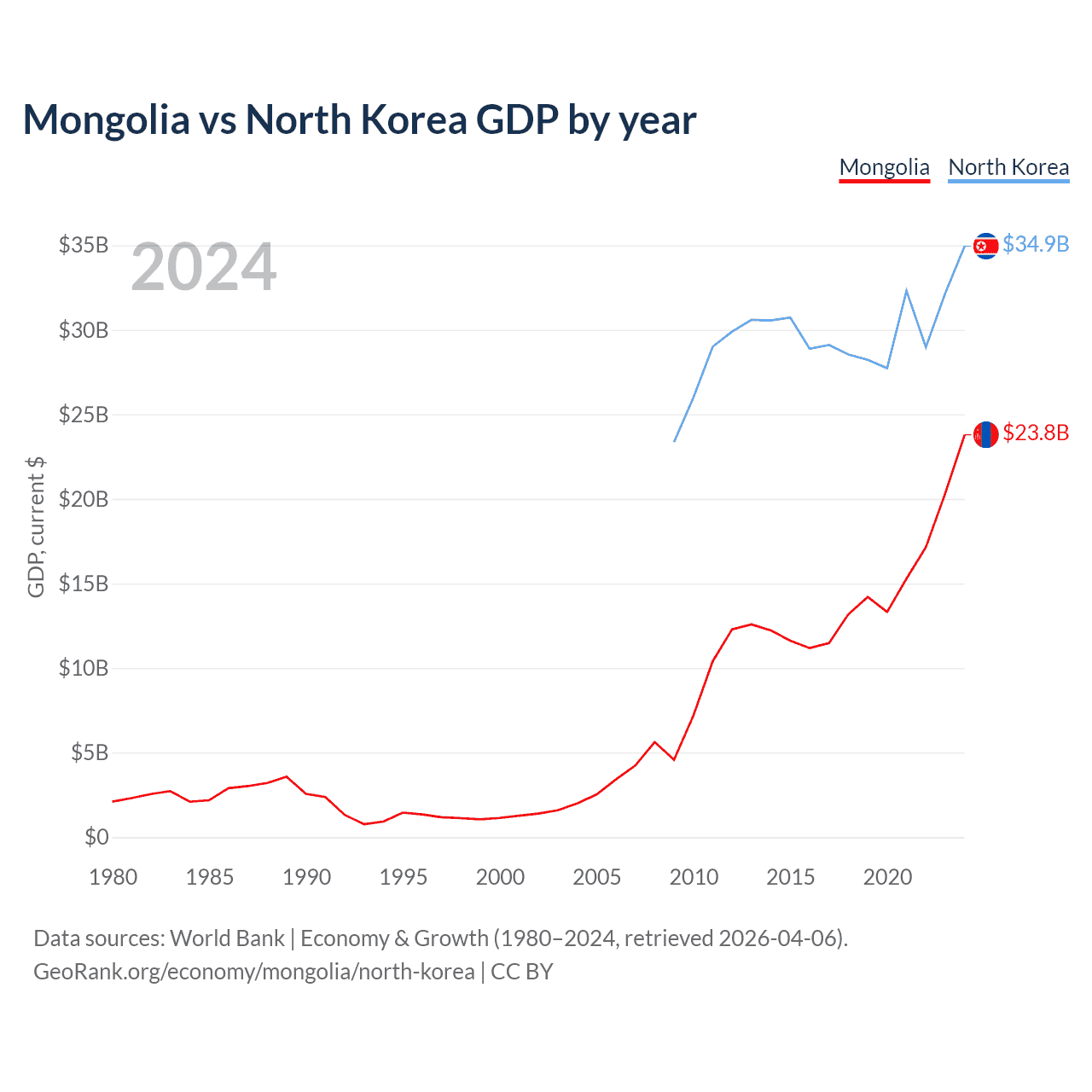 Mongolia vs North Korea GDP by year