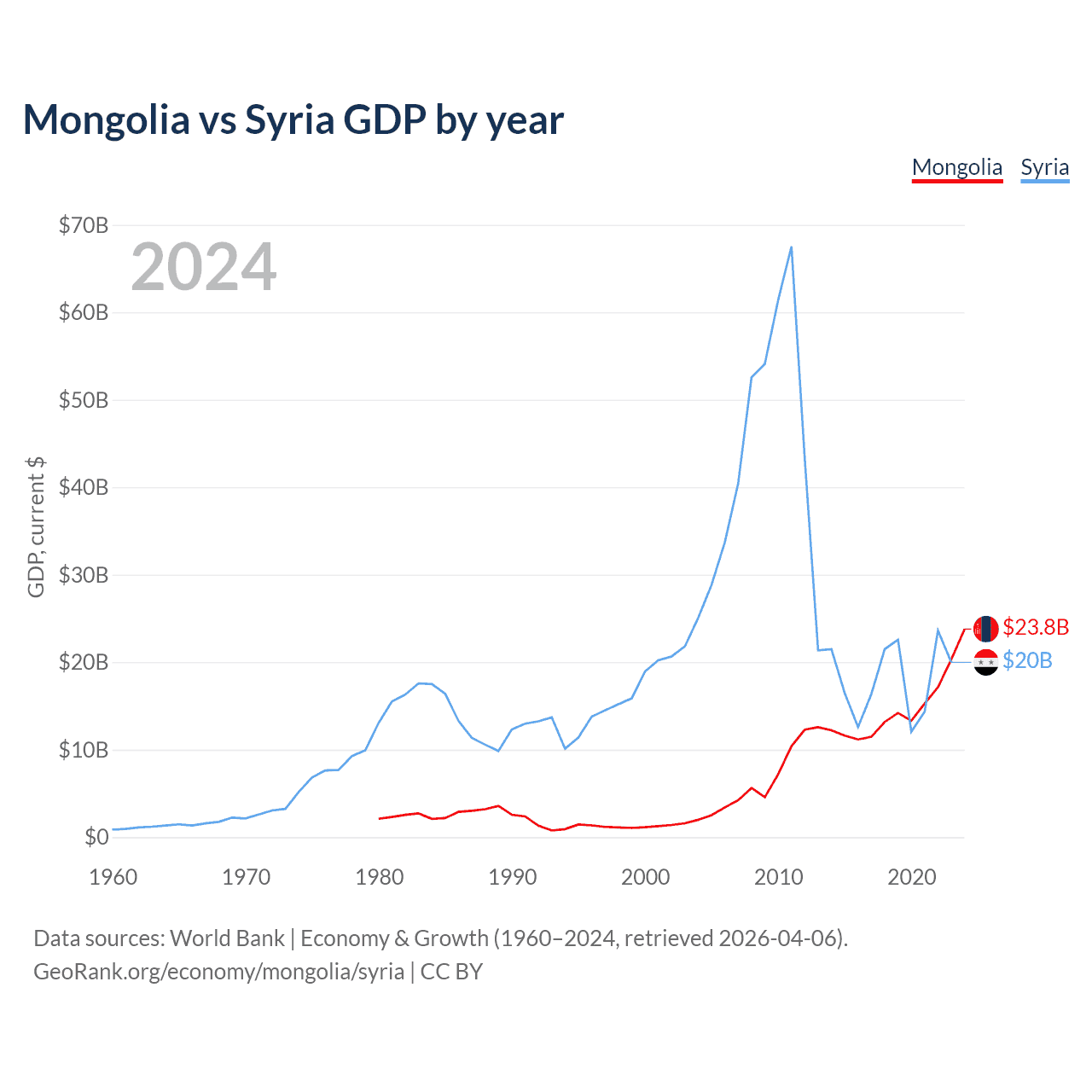 Mongolia vs Syria GDP by year