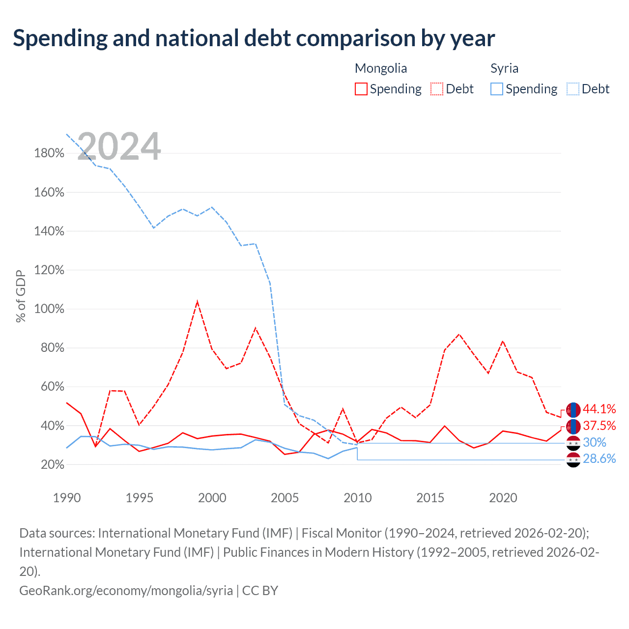 Mongolia has $10.5B in government debt (44.1% of GDP), compared to $18.4B (30% of GDP) in Syria.