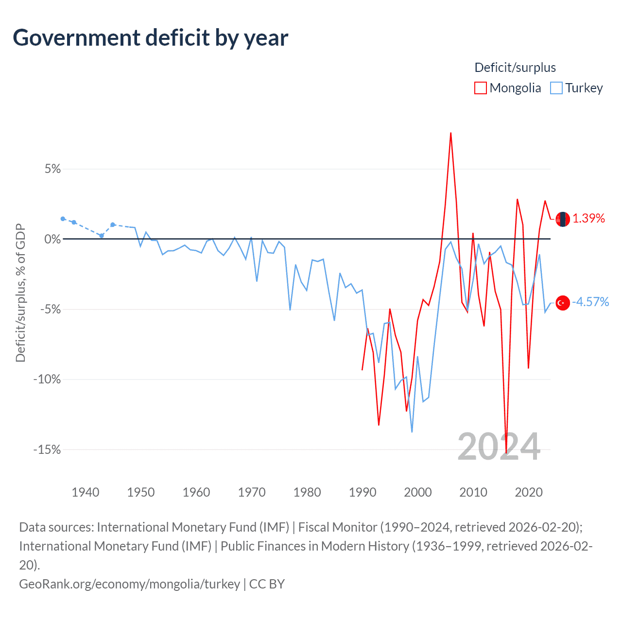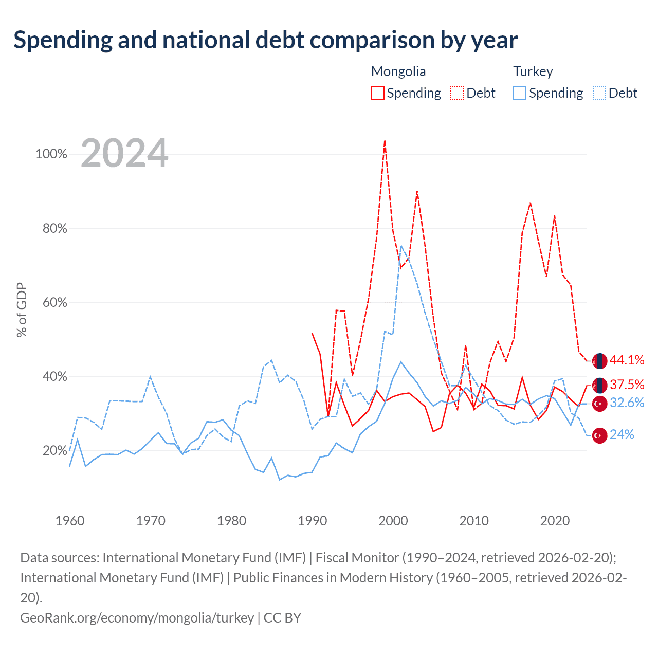 Mongolia has $10.5B in government debt (44.1% of GDP), compared to $327B (24% of GDP) in Turkey.