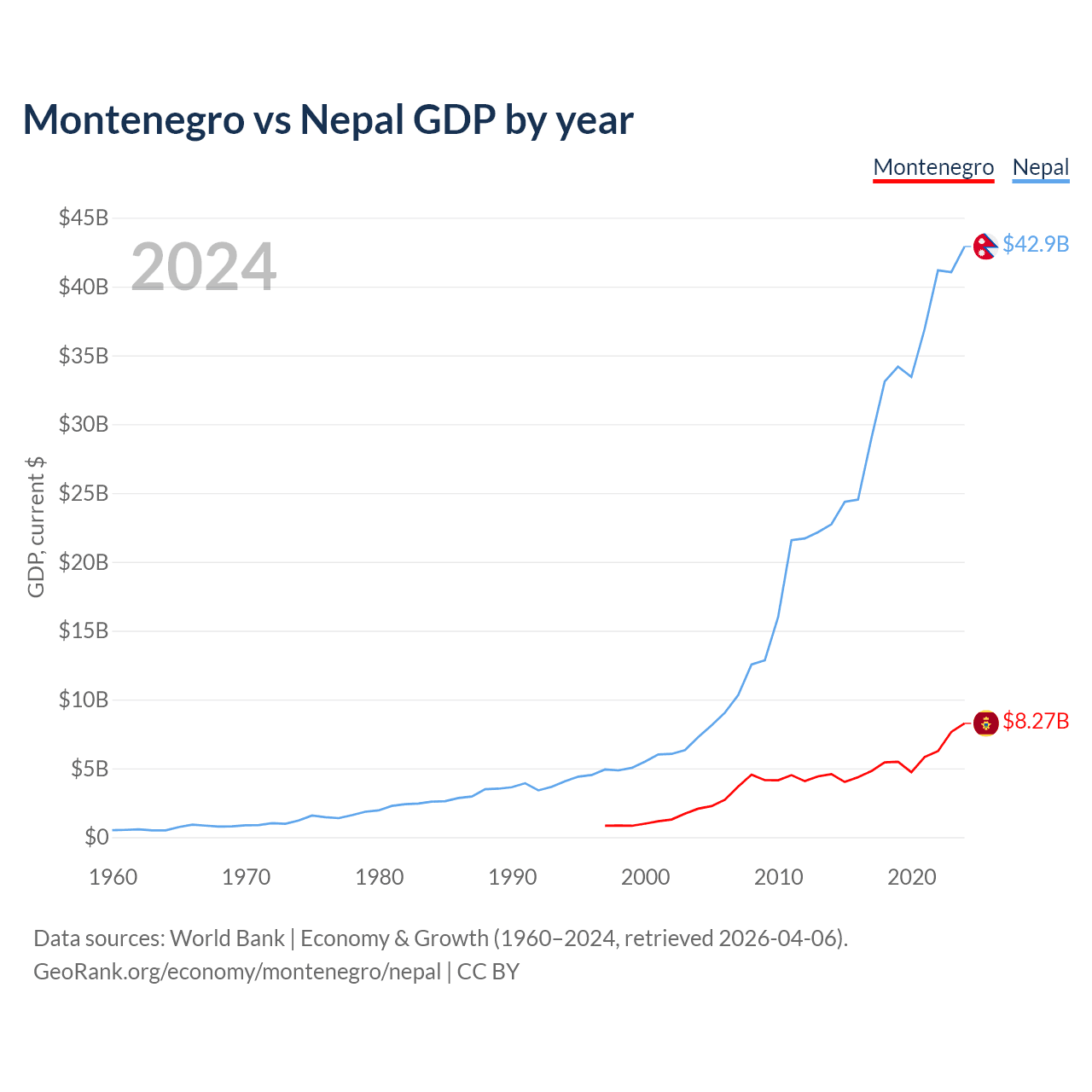 Montenegro vs Nepal GDP by year