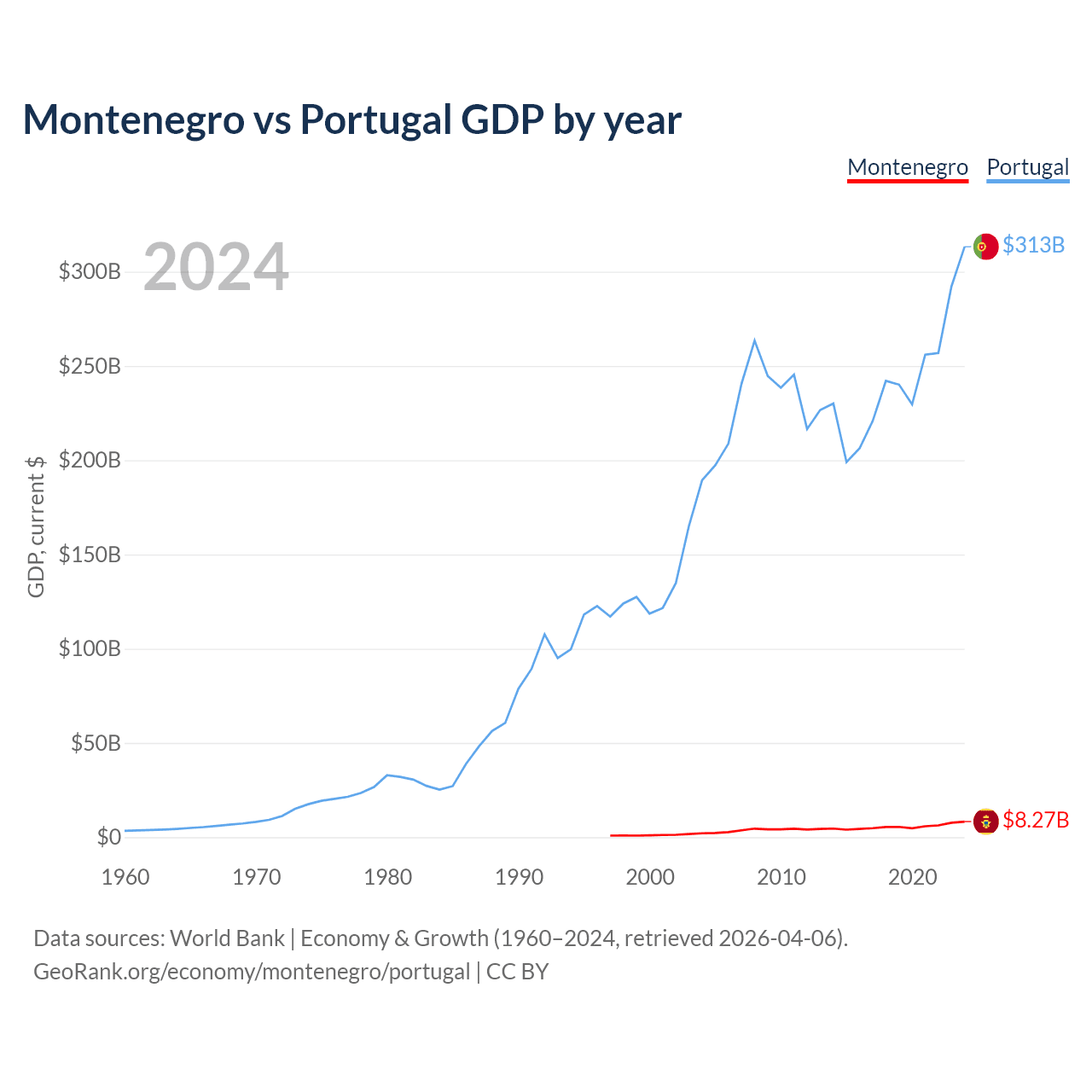 Montenegro vs Portugal GDP by year