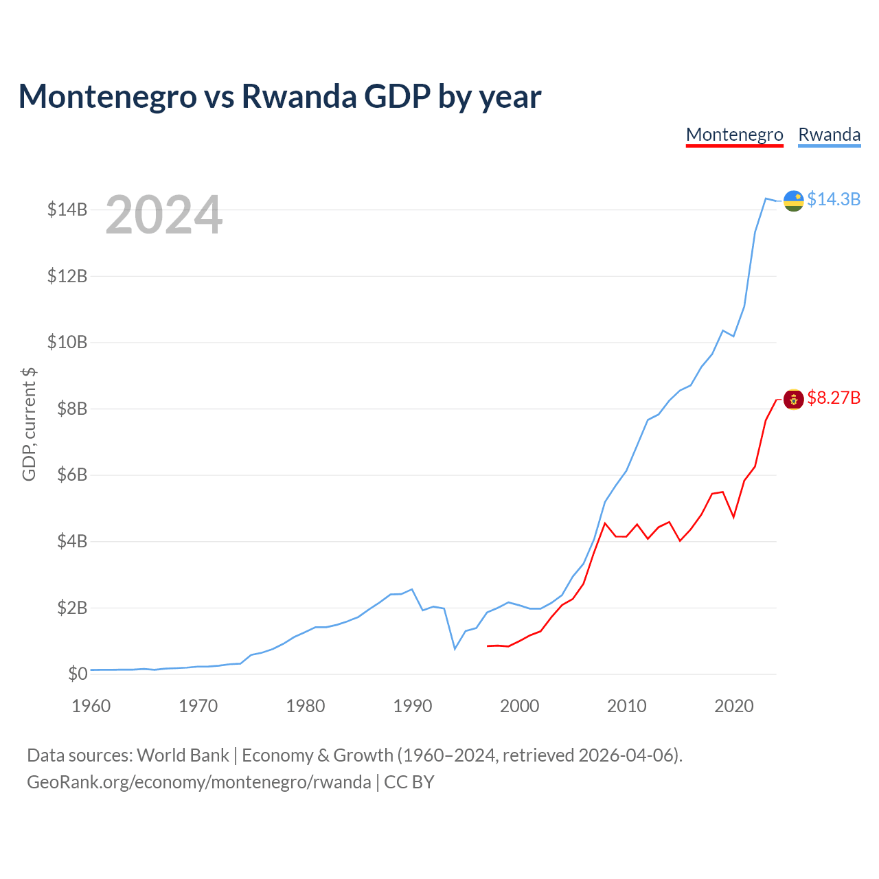 Montenegro vs Rwanda GDP by year