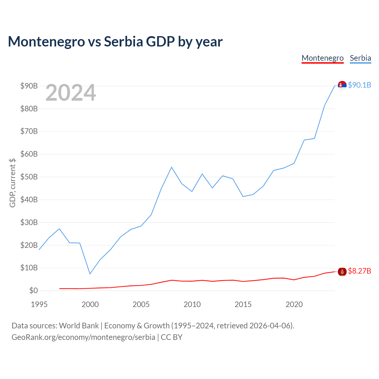 Data sources: World Bank | Economy & Growth (1995–2024, retrieved 2026-04-06).