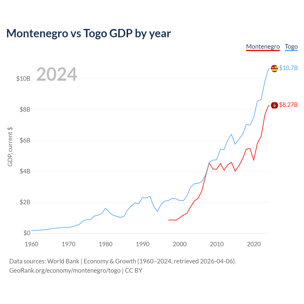 Montenegro vs Togo GDP by year