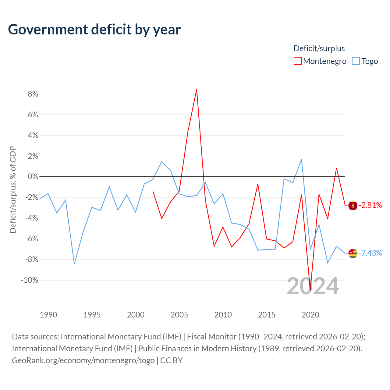 - International Monetary Fund (IMF) | Fiscal Monitor (1990–2024, retrieved 2026-02-20)