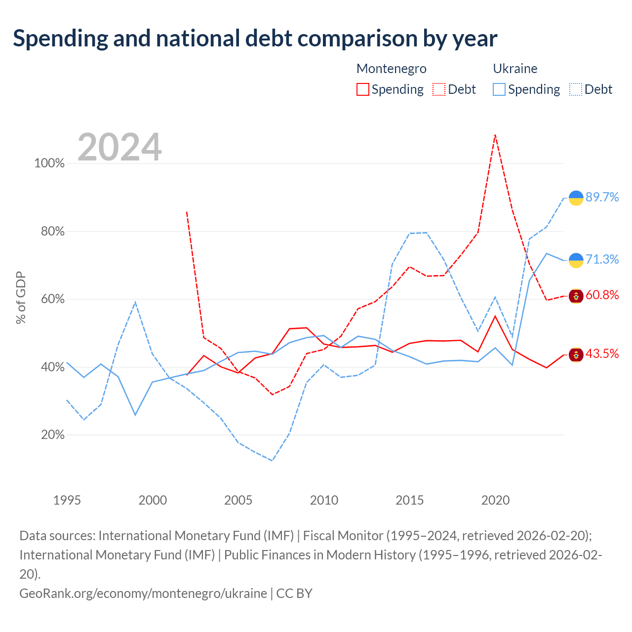 Montenegro has $5.02B in government debt (60.8% of GDP), compared to $171B (89.7% of GDP) in Ukraine.