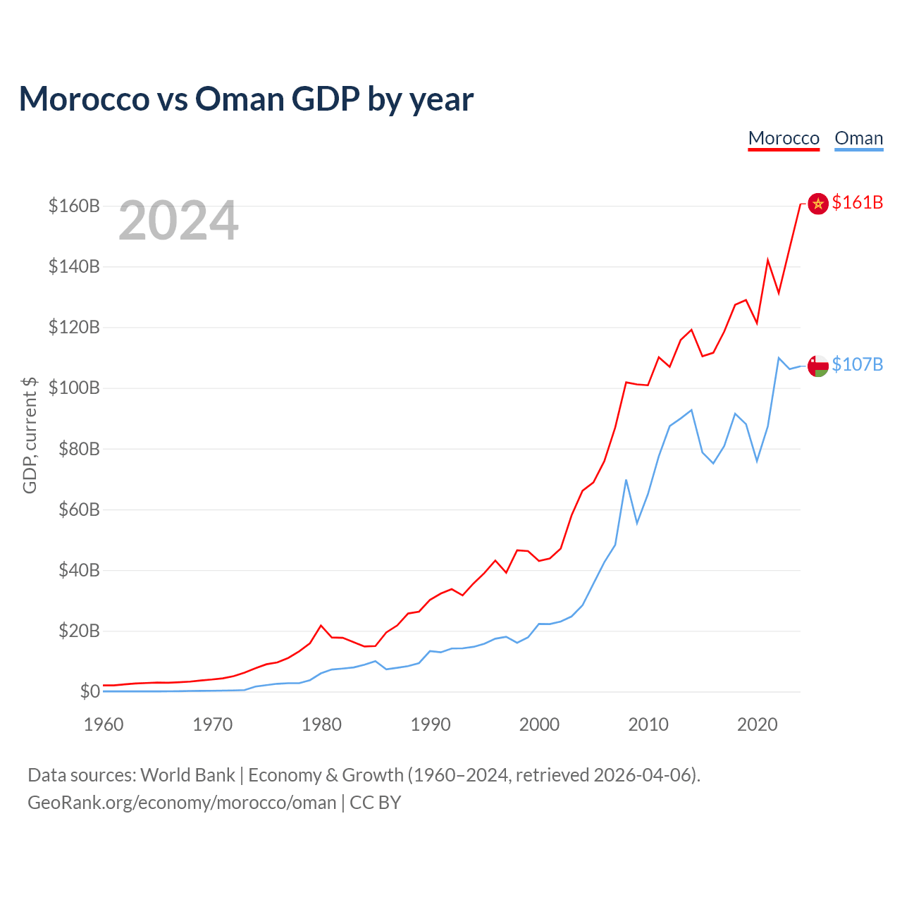 Morocco vs Oman GDP by year