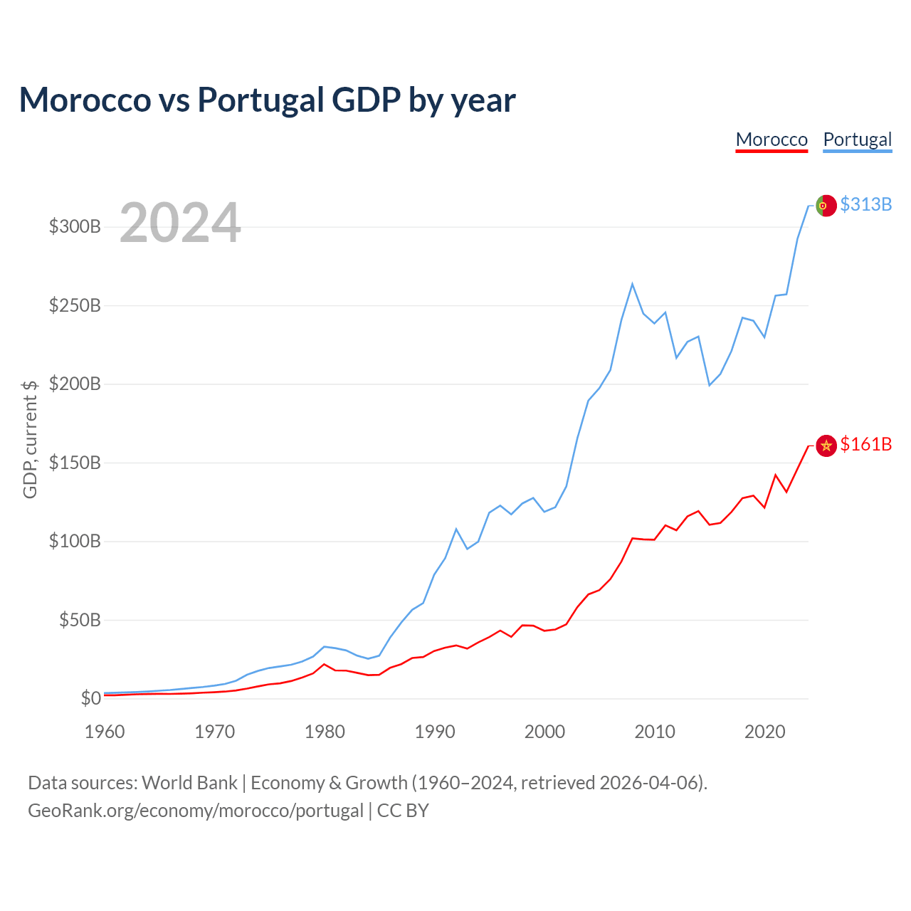 Morocco vs Portugal GDP by year