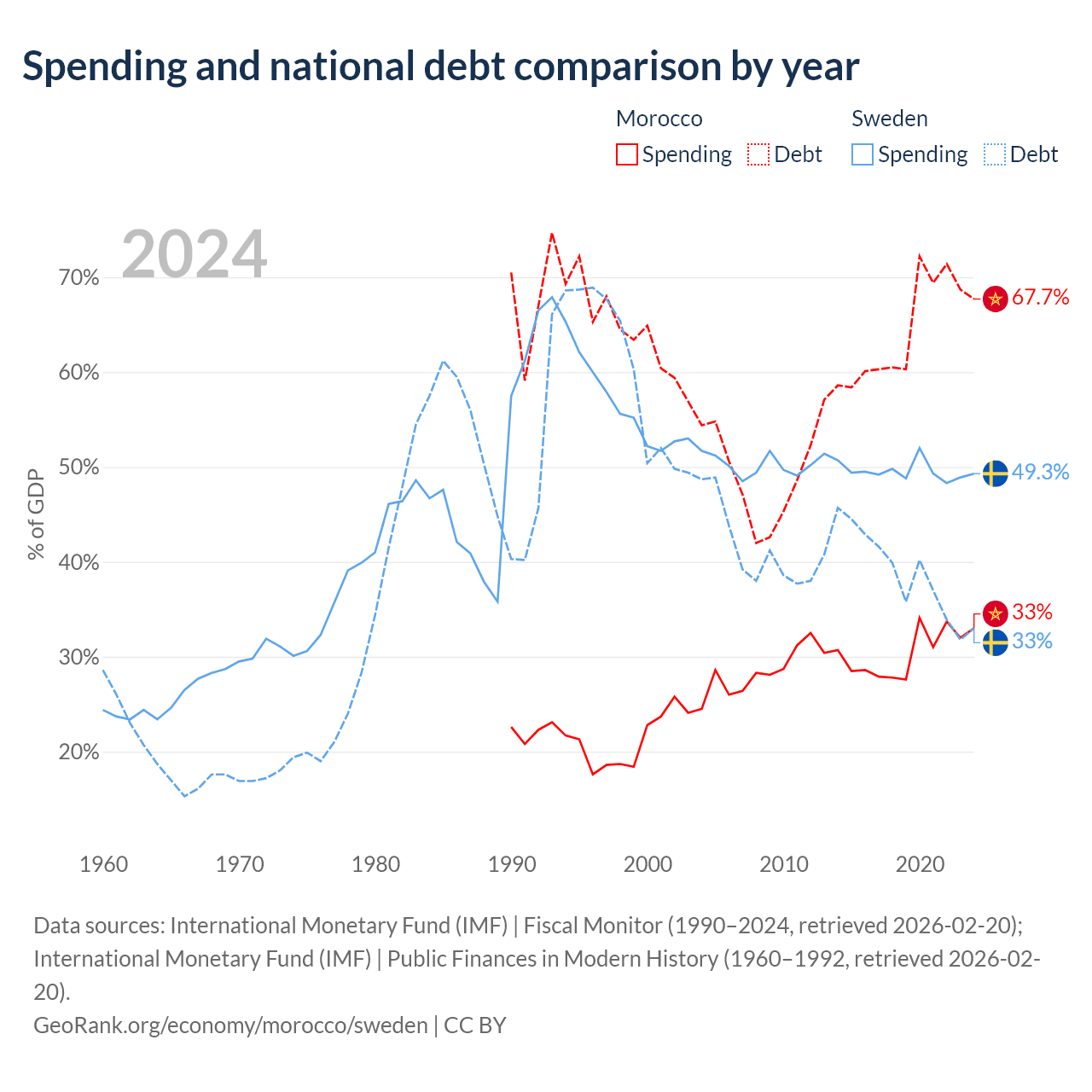 Morocco has $109B in government debt (67.7% of GDP), compared to $199B (33% of GDP) in Sweden.