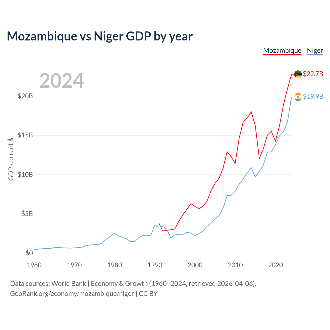 Mozambique vs Niger GDP by year