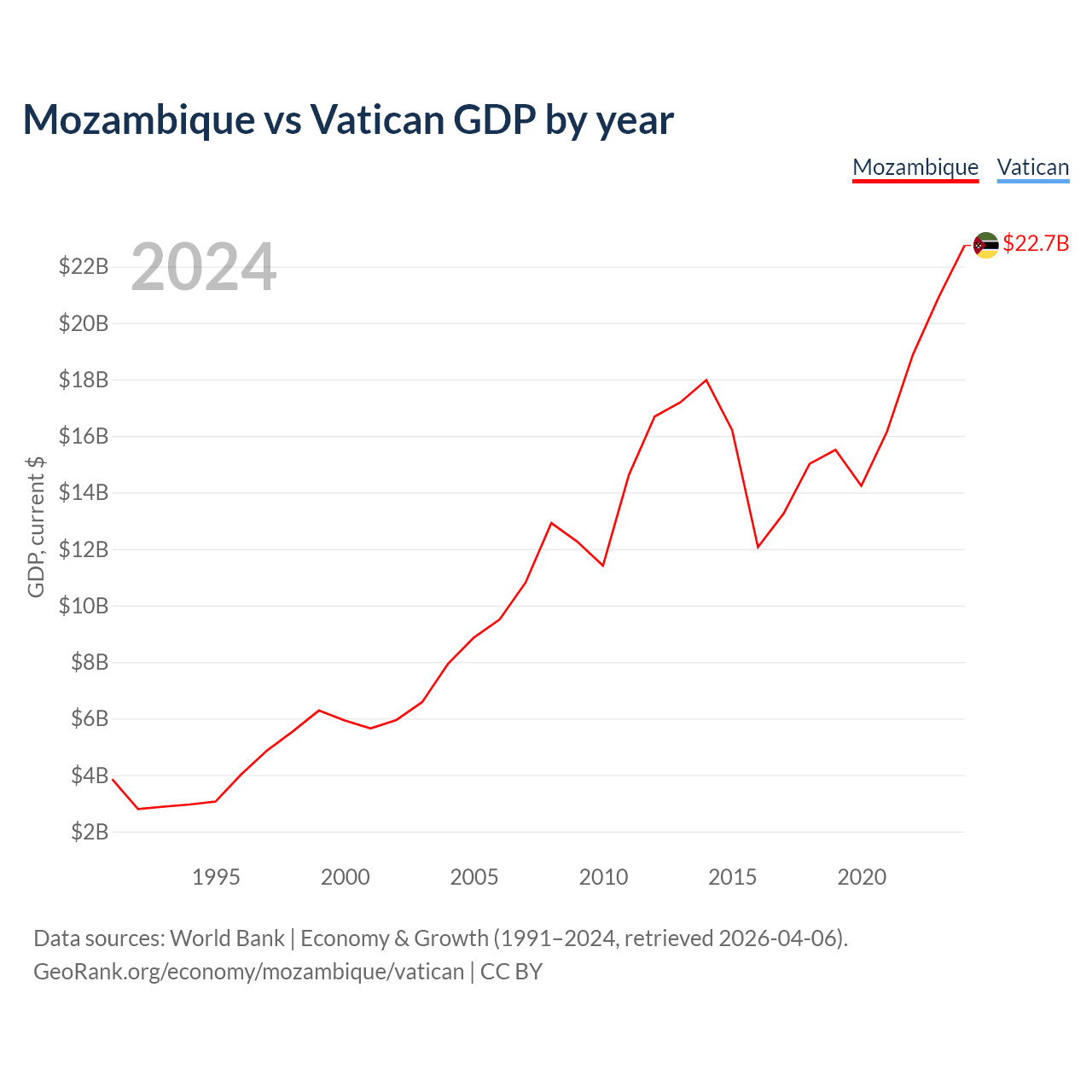 Mozambique vs Vatican GDP by year