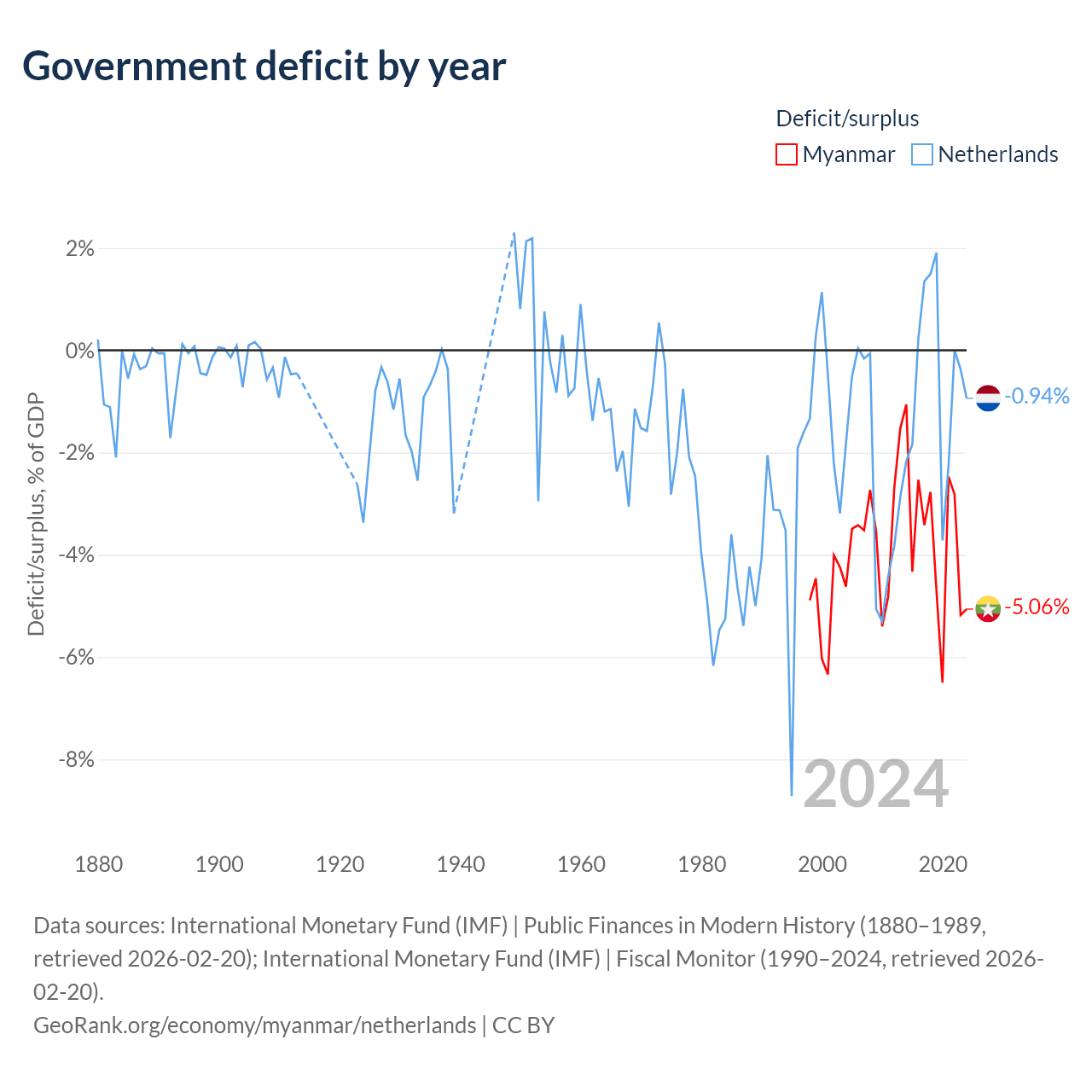 Myanmar has $44B in government debt (59.3% of GDP), compared to $532B (43.8% of GDP) in the Netherlands.