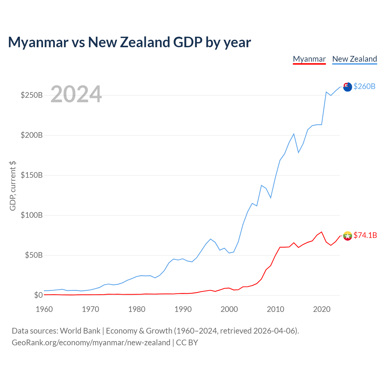 Data sources: World Bank | Economy & Growth (1960–2024, retrieved 2026-04-06).