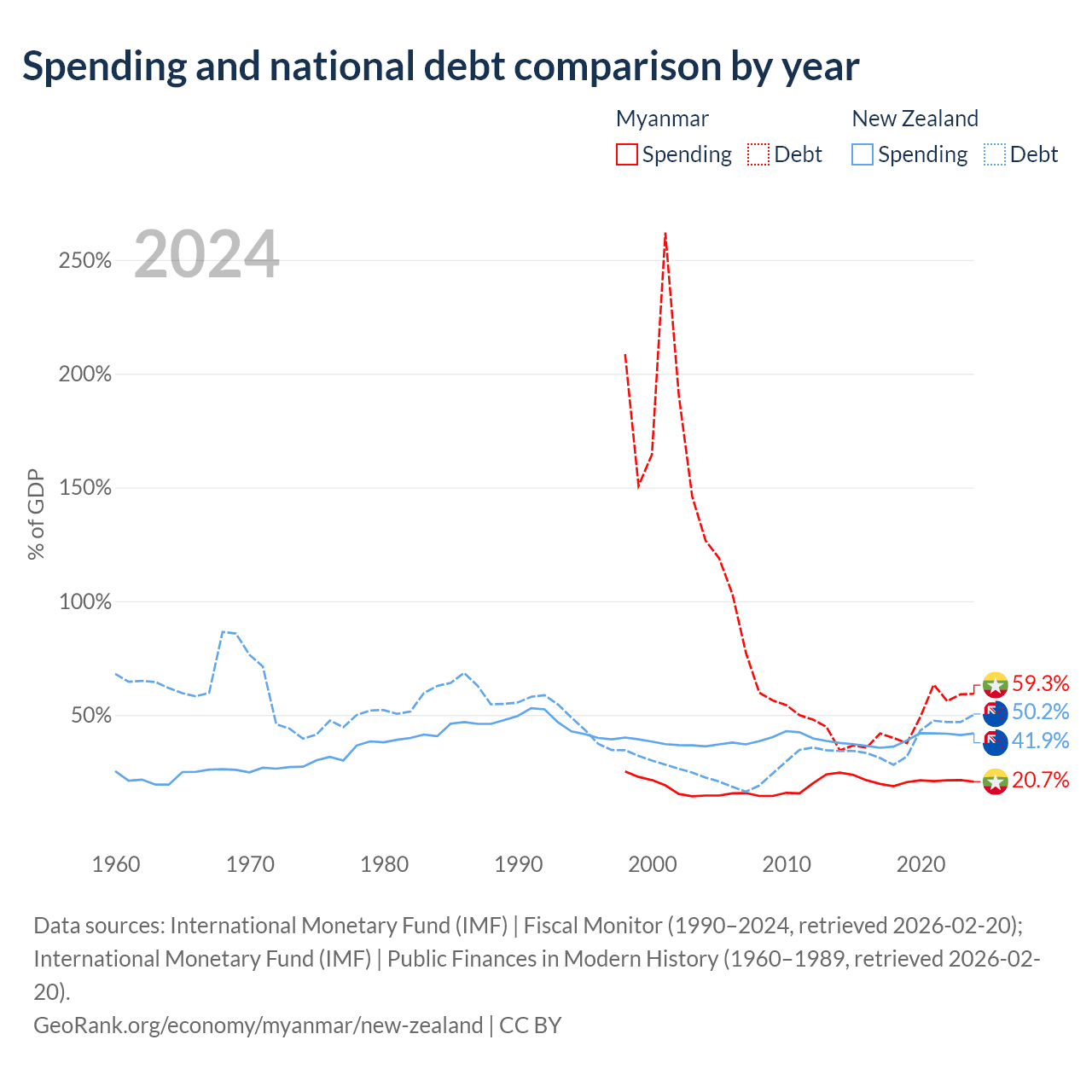 Myanmar has $44B in government debt (59.3% of GDP), compared to $131B (50.2% of GDP) in New Zealand.