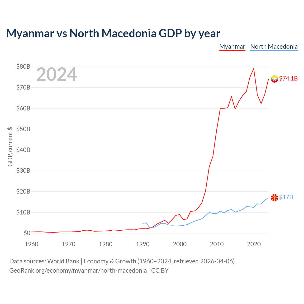 Data sources: World Bank | Economy & Growth (1960–2024, retrieved 2026-04-06).