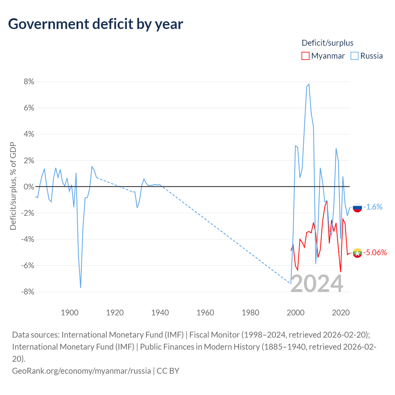 - International Monetary Fund (IMF) | Public Finances in Modern History (1885–1996, retrieved 2026-02-20)