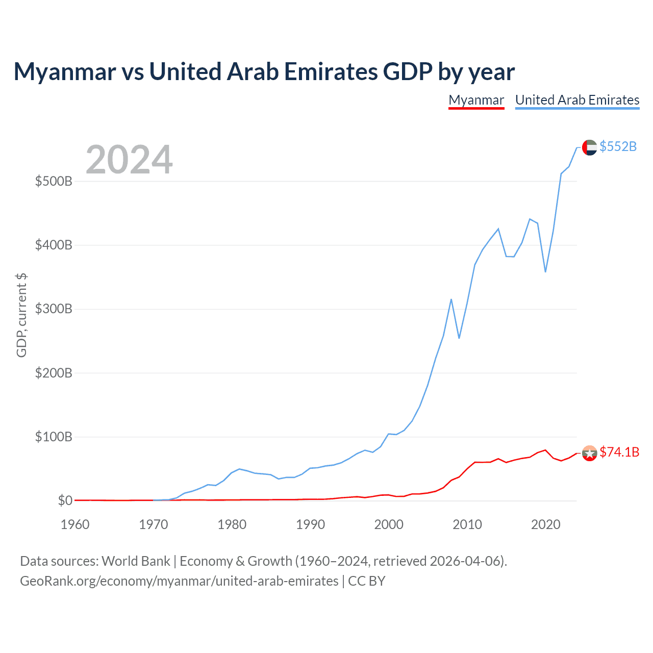 Data sources: World Bank | Economy & Growth (1960–2024, retrieved 2026-04-06).
