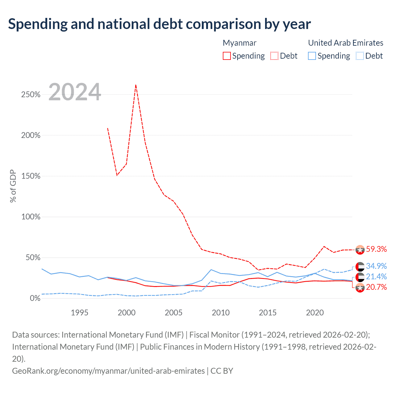 Myanmar has $44B in government debt (59.3% of GDP), compared to $193B (34.9% of GDP) in the United Arab Emirates.