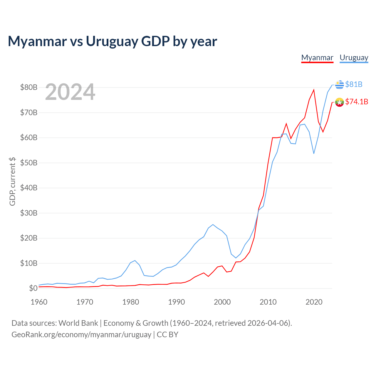 Data sources: World Bank | Economy & Growth (1960–2024, retrieved 2026-04-06).