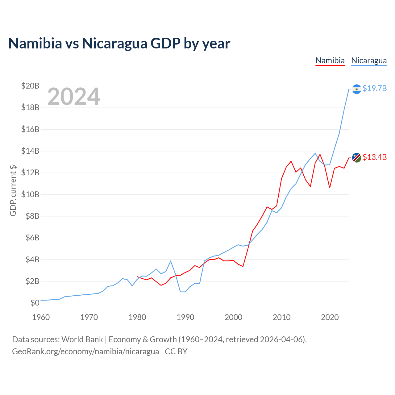 Namibia vs Nicaragua GDP by year