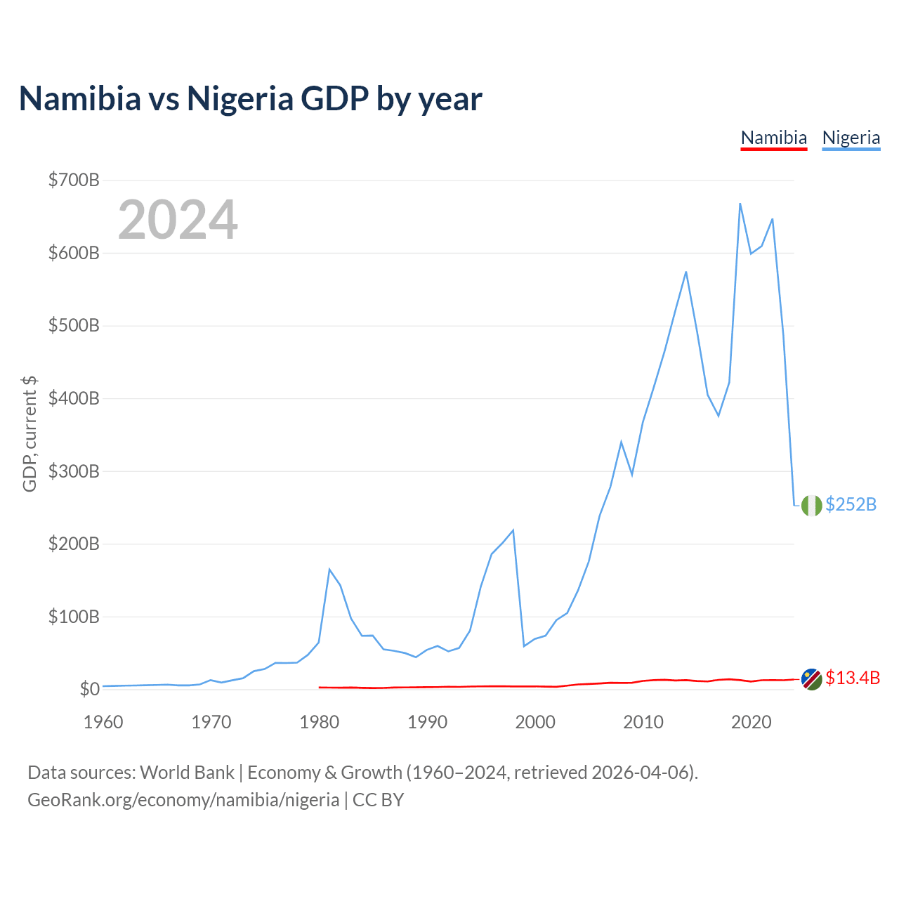 Namibia vs Nigeria GDP by year
