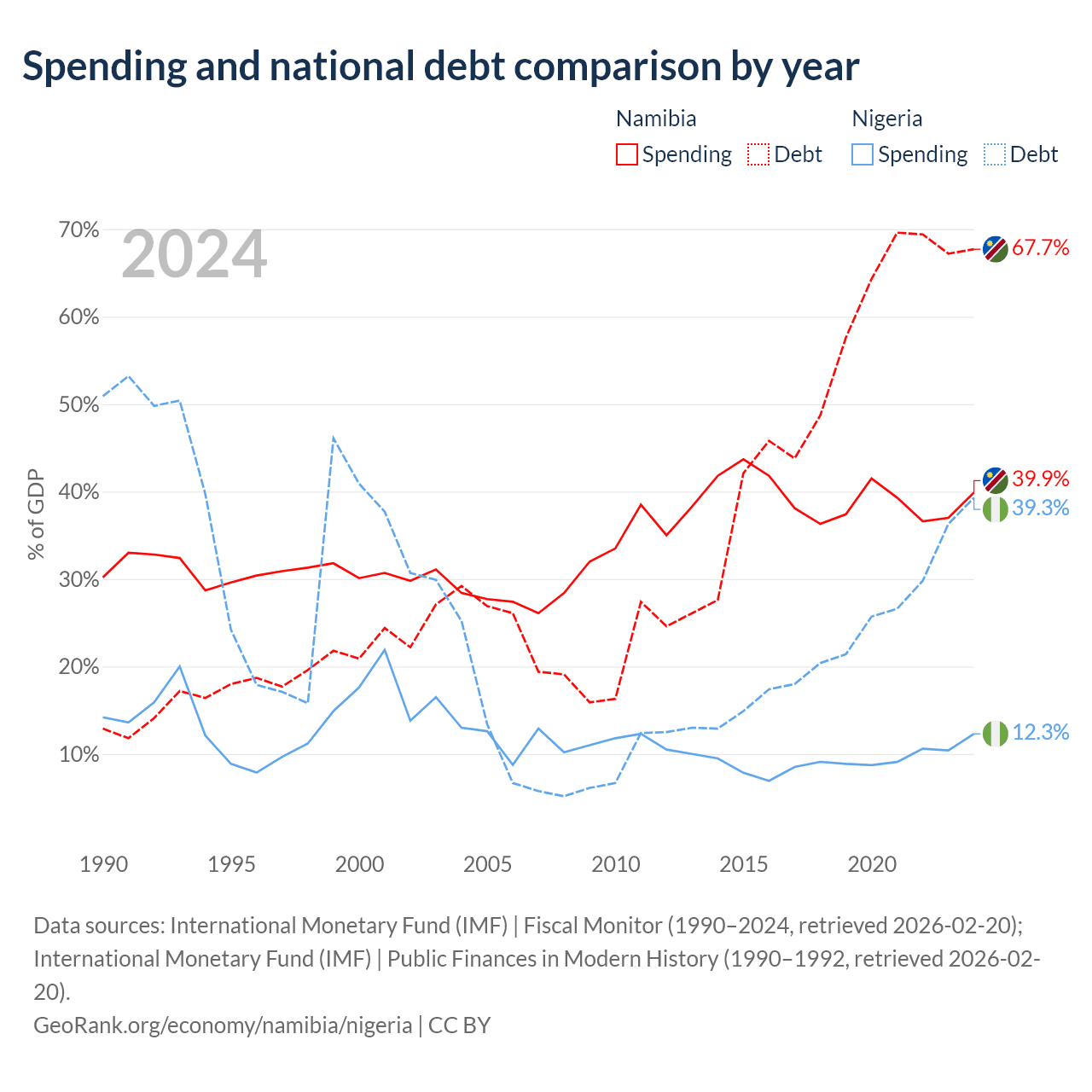 - International Monetary Fund (IMF) | Fiscal Monitor (1990–2024, retrieved 2026-02-20)