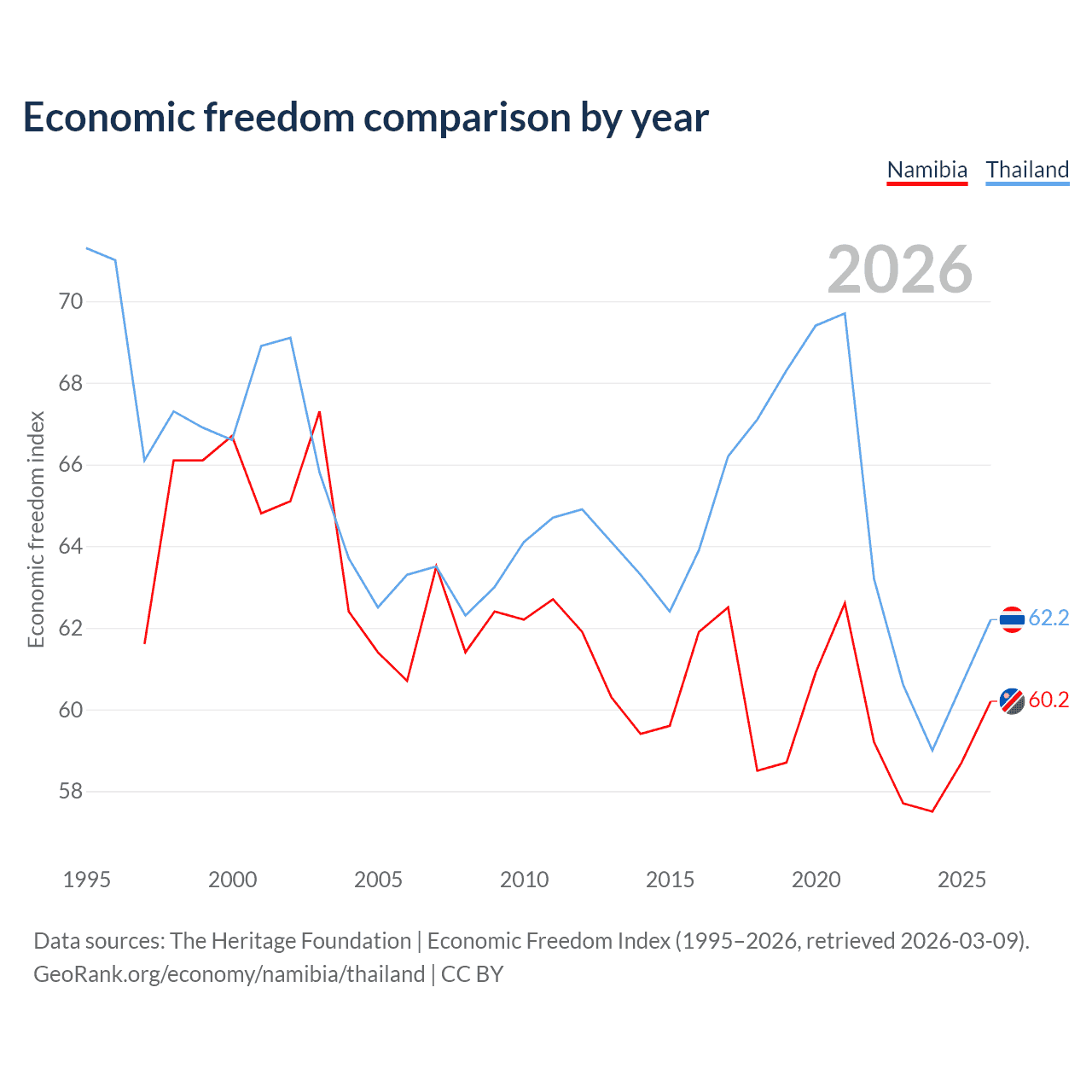 Data sources: The Heritage Foundation | Economic Freedom Index (1995–2026, retrieved 2026-03-09).