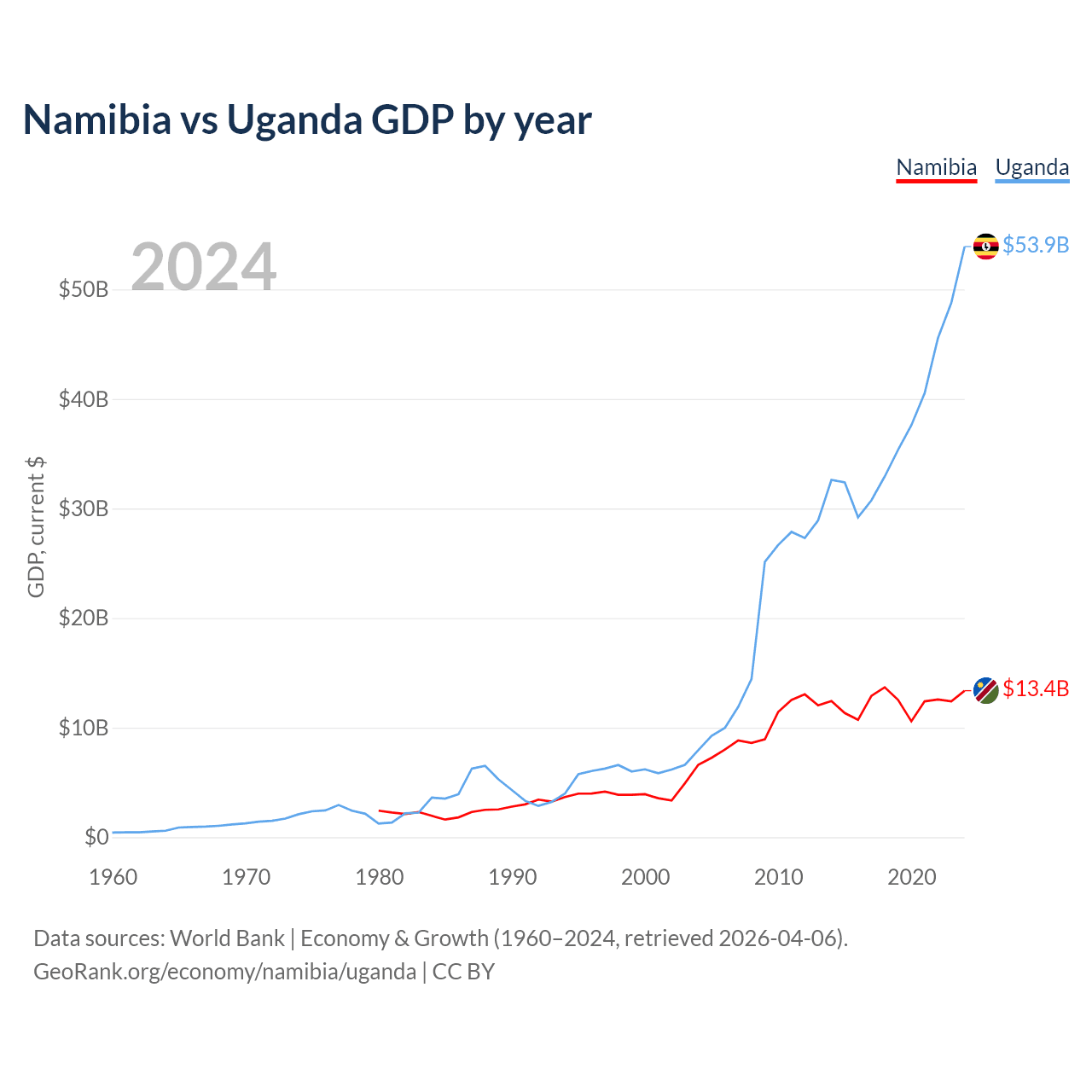 Namibia vs Uganda GDP by year