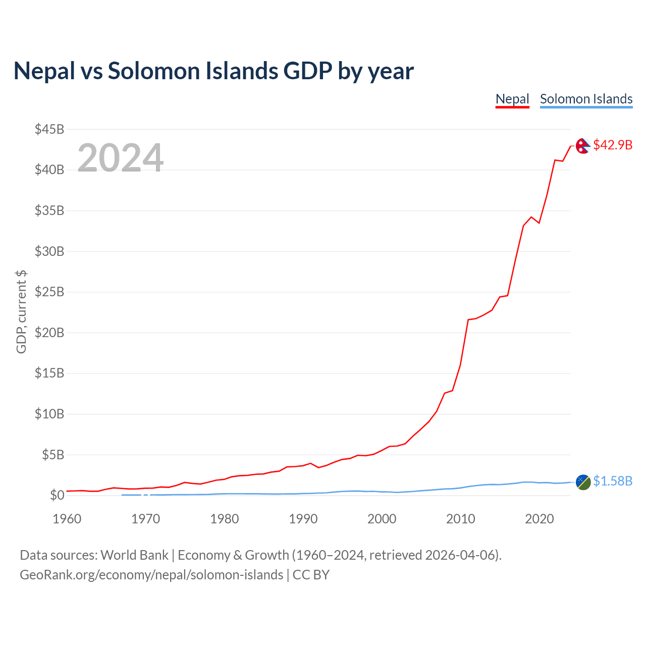 Nepal vs Solomon Islands GDP by year