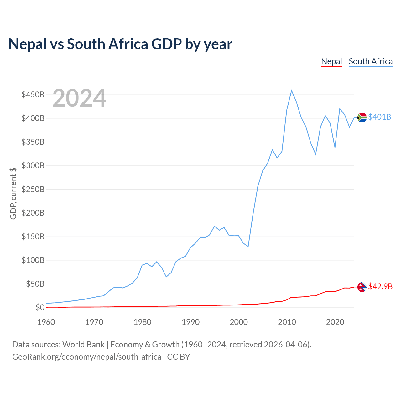 Nepal vs South Africa GDP by year