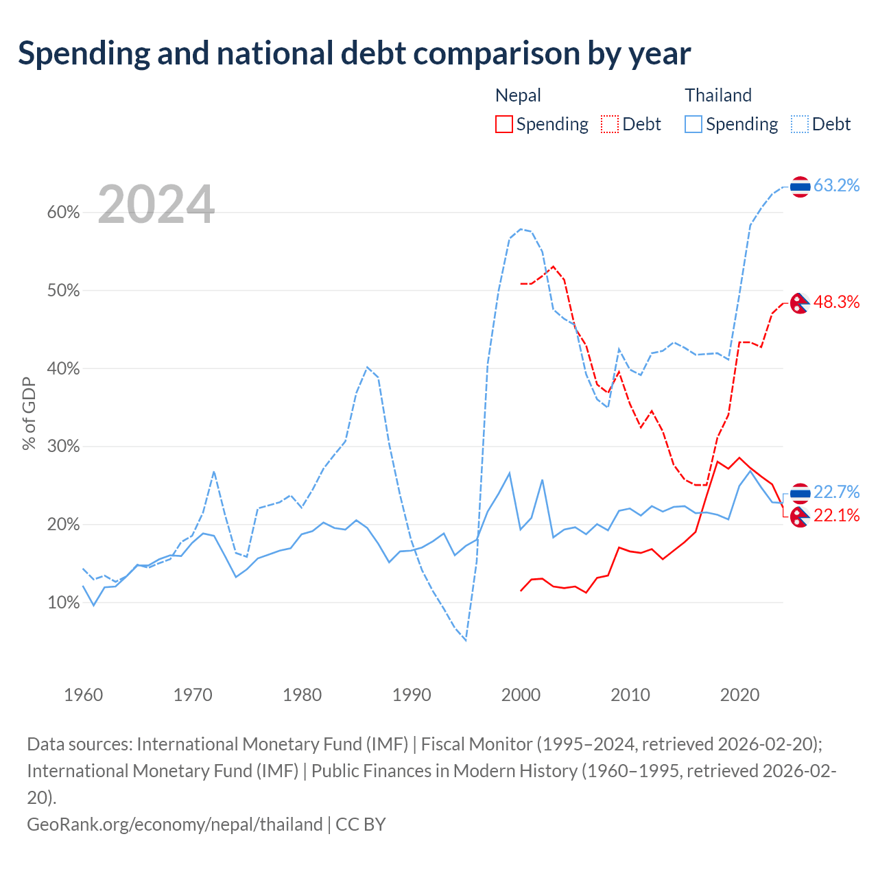 Nepal has $20.7B in government debt (48.3% of GDP), compared to $333B (63.2% of GDP) in Thailand.
