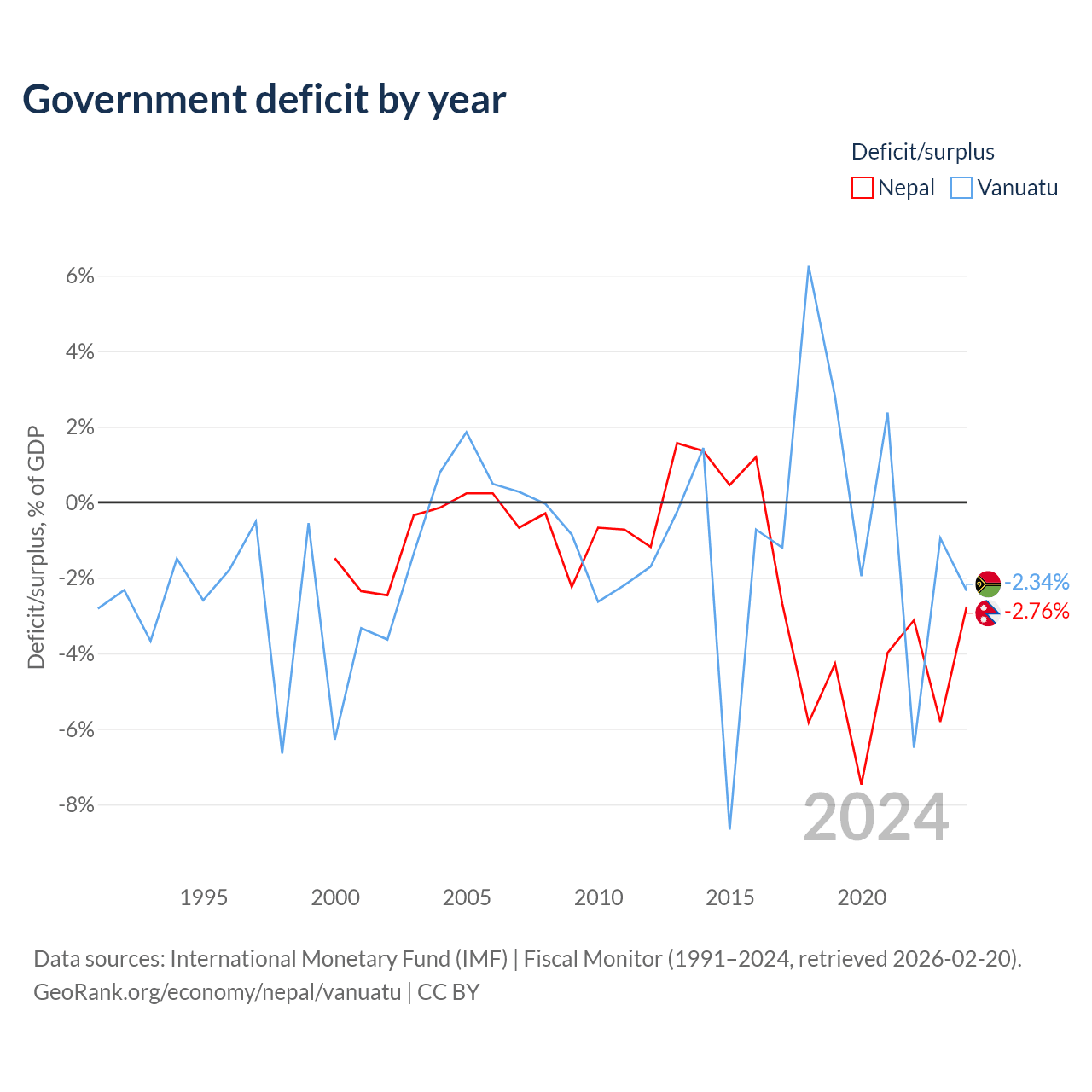 - International Monetary Fund (IMF) | Fiscal Monitor (1991–2024, retrieved 2026-02-20)