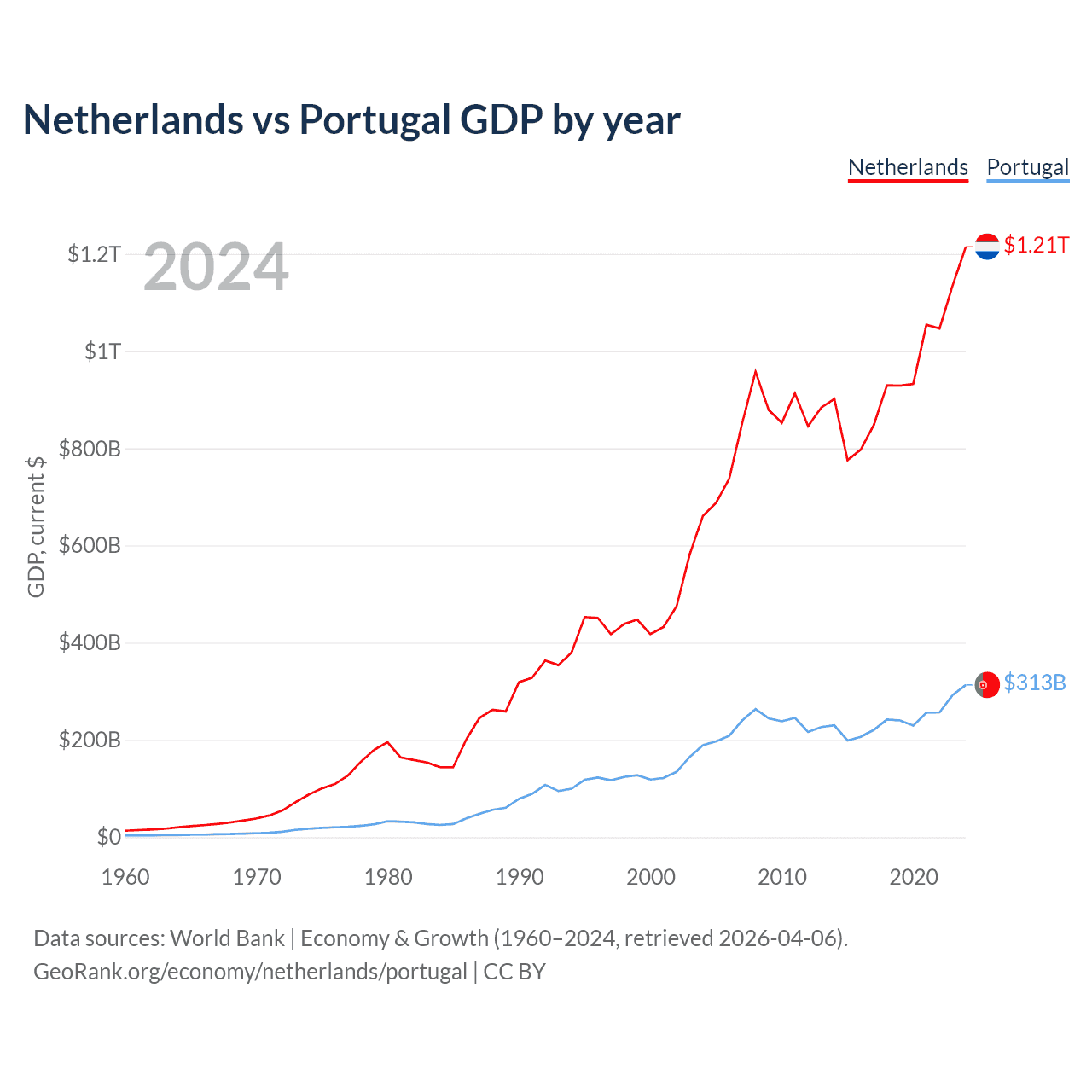 Netherlands vs Portugal GDP by year