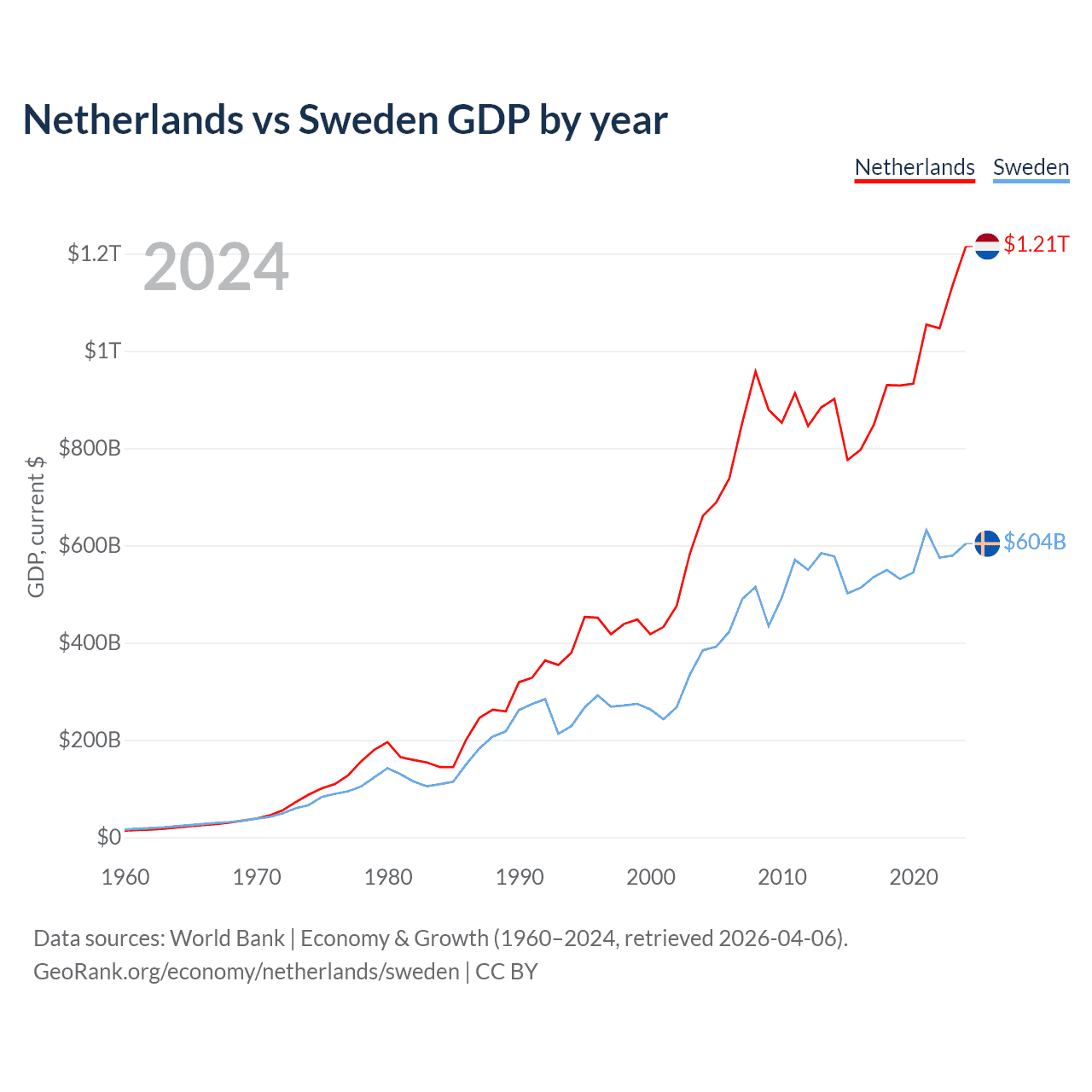 Netherlands vs Sweden GDP by year