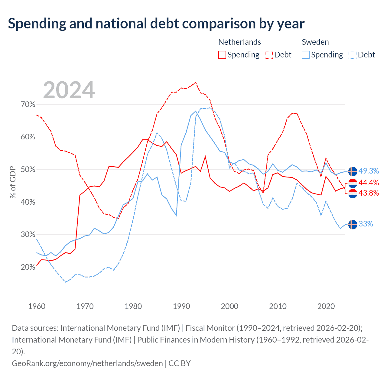 The Netherlands has $532B in government debt (43.8% of GDP), compared to $199B (33% of GDP) in Sweden.