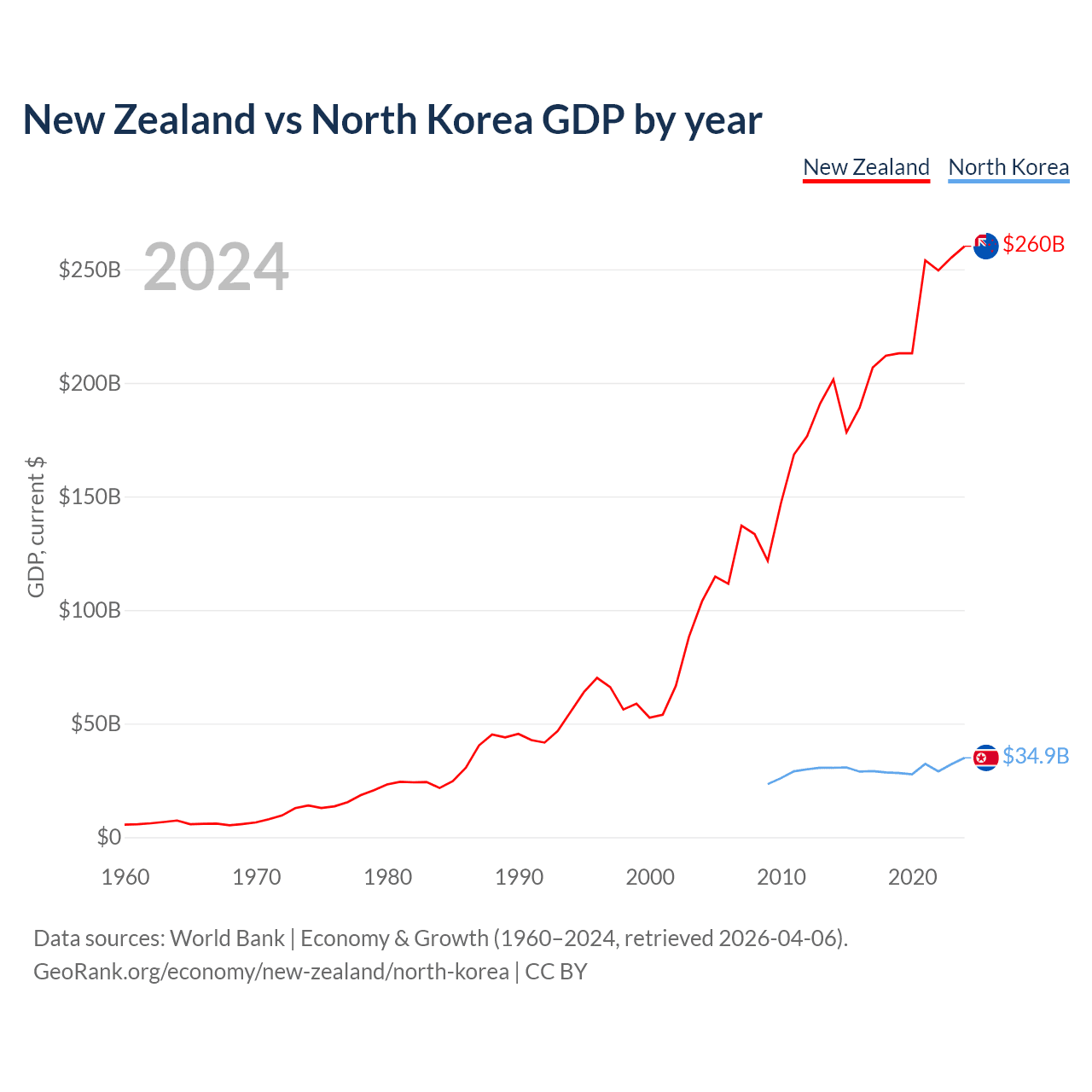 New Zealand vs North Korea GDP by year