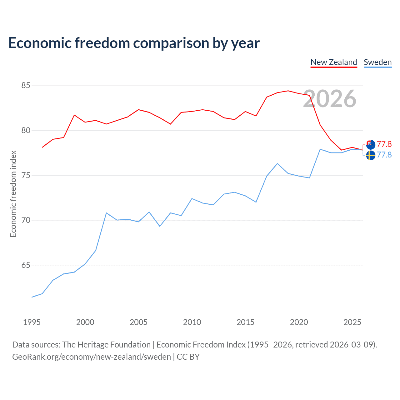 Data sources: The Heritage Foundation | Economic Freedom Index (1995–2026, retrieved 2026-03-09).